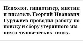 Бенхам был не единственным, кто публично использовал знание о человеческих типах. Одновременно с ним это знание применял в своей практике один из выдающихся психологов начала прошлого века — Георгий Иванович Гурджиев. Если первый получил это знание, как говорится, «прямо в руки», не прикладывая при этом больших усилий, то второй не только потратил на его поиски многие годы, но также соединил отдельные части знания о человеческих типах в систему, целью которой было всестороннее развитие человека. Эта система была направлена на гармоничное развитие тела, разума, эмоций и сознания человека.