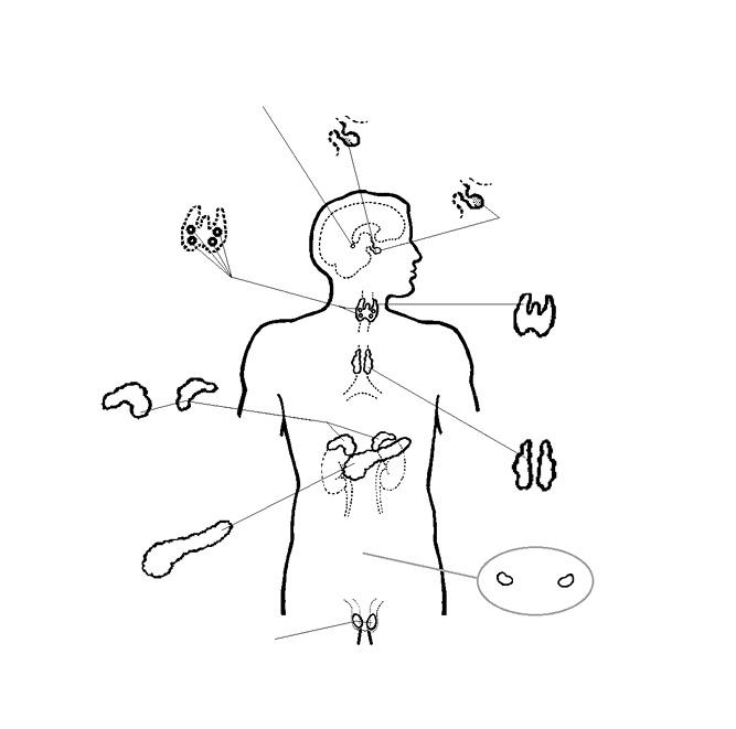 Эндокринной системой принято называть совокупность желез, обеспечивающих выработку гормонов. Как известно, эндокринная система посредством гормонов регулирует функции организма и координирует деятельность всех его органов и систем. К эндокринной системе относятся следующие железы: эпифиз, передняя и задняя доли гипофиза, щитовидная железа, паращитовидная железа, поджелудочная железа, тимус (вилочковая железа), надпочечники и половые железы.
