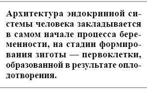 Архитектура эндокринной системы человека закладывается в самом начале процесса беременности, на стадии формирования зиготы — первоклетки, образованной в результате оплодотворения. Стадия формирования зиготы продолжается тридцать часов. Со