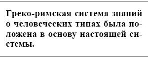 Среди всех древних систем классификации людей по типам тела лишь одна сохранилась наиболее полно. Это греко-римская система — прямая наследница древнеегипетской. Именно она давала богатый материал и была положена в основу настоящей системы. Эта система знаний передавалась обычному человеку посредством театральных представлений. Какой прозорливостью и масштабом мышления обладали те, кто создал самое удивительное на свете учебное заведение — древнегреческий театр! В этом театре юноши получали основное представление о различиях в сути человеческой природы и последствиях этого. На глазах будущих мужчин и их отцов — основы свободного общества — разворачивалось действо, которое демонстрировало характерные проявления человеческих типов и помещало это знание в самое сердце человека. Как и большинство других древних систем, эта система находила свое выражение в мифах.