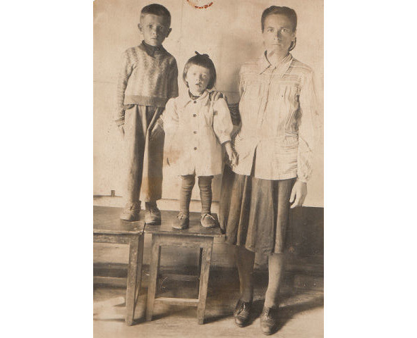 Я, сестрёнка Галя и брат отца, дядя Гриша. Единственная фотка до высылки в Сибирь