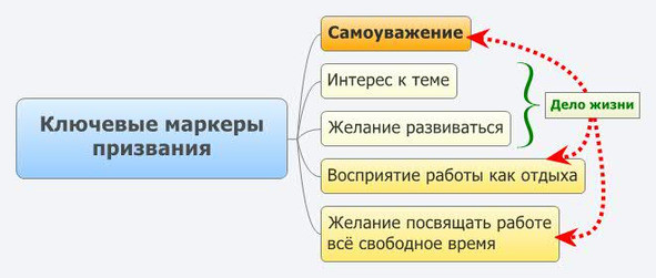 Поскольку призвание всегда связано с какой-либо деятельностью, то найти его можно проанализировав свою деятельность в сравнении с испытываемыми чувствами, ощущениями и желаниями. Так, ключевыми маркерами какого-либо дела как призвания, являются:
