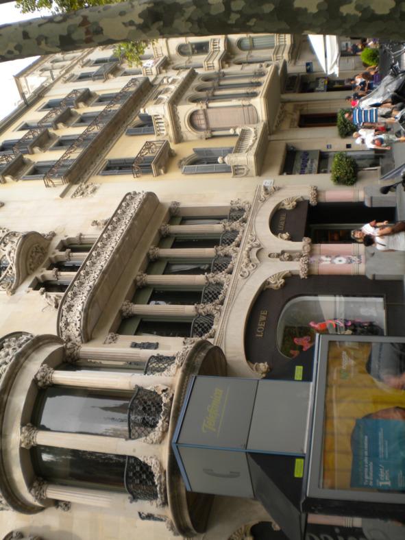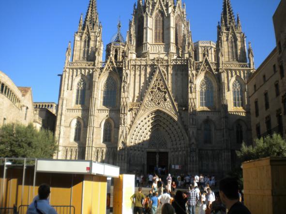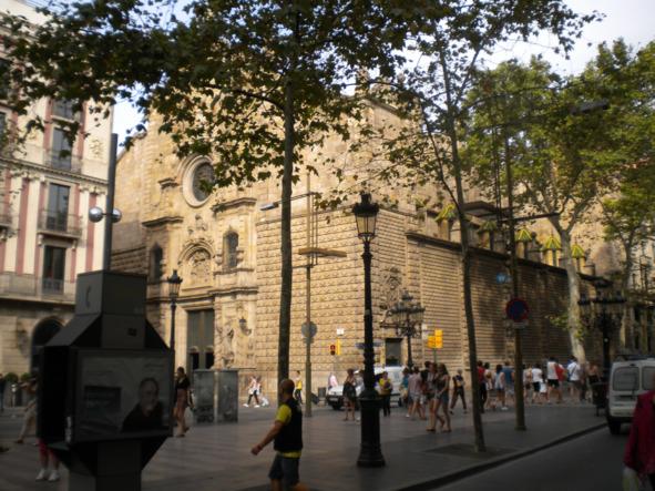 Мы прибыли в Барселону поздно вечером, развозка из аэропорта где-то в 21.30 выкинула нас на Плаза ди Каталуния, а уже в 22.00 мы, успев проскочить с добрые полтора километра по ночным Рамблас и наскоро швырнув вещи в гостинице, вылетели посмотреть на долгожданное чудо. Гостиницу в плане расположения я в этот раз выбрал очень удачно — она находилась в самой середине Рамблас, в равной удаленности и от набережной, и от Плаза ди Каталуния, пятьдесят метров от самих Рамблас в глубь Эль-Раваль, по узенькому, застроенному трех и четырех этажными домами 18 века, и совсем недалеко от легендарного рынка Старой Барселоны «Ла Бокерия», куда уже на следующее утро нас конечно же, в первую очередь понесли ноги. Двери гостиницы упирались в артистический подъезд знаменитой барселонской Оперы «Лицео», а когда мы проходили из нашего переулка к Рамблас, то неизменно попадали на небольшую площадь перед входом в оперу, которая с противоположной стороны — там, откуда заходишь в кварталы Старой Барселоны — обрамлялась полусферой из нескольких зданий совершенно необычного по стилю концептуального декора. Над самими этими строениями, в утренние часы особенно загадочно и заманчиво, парили шпили Кафедрального собора и еще нескольких готических церквей 14 века по дороге к нему. И стоило лишь взглянуть на них, как предвкушение развернувшегося где-то вокруг них и ждущего встречи, обещающего массу откровений и впечатлений чуда, немедленно и властно заливало душу сладостным трепетом. И поскольку выходить сюда мы были вынуждены по нескольку раз в день, и вид всякий раз восхищал глаз, снимки этого места постоянно попадаются в выставленной здесь серии фотографий.