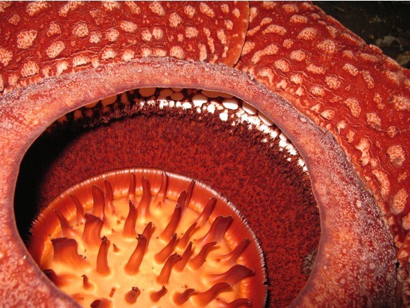 Самый большой в мире цветок – Раффлезия – растёт в нескольких в мире местах, и я уже встрачался с таковым в малайском штате Сабах три года назад – но там меньший в диаметре сорт, примерно как большая кастрюля в диаметре. Но вообще встретить цветок так просто нельзя. Нужно для этого быть ботаником или охотником по цветам. Суперцветок существует в виде бутона от девяти месяцев до года. Бутон постепенно расширяется, становится по размеру как кочан капусты, и растёт он прямо на земле, нету у него ни ствола, ни стебля. Наконец цветок раскрывается и цветёт от трёх до пяти дней. Только в это время и можно увидеть красоту и величину самого большого цветка.