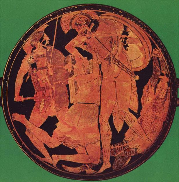 Рис. 2. Пентесилеи. Ахилл и Пентесилея. Ок. 460 г. до н. э. Краснофигурная керамика. Глиптотека, Мюнхен