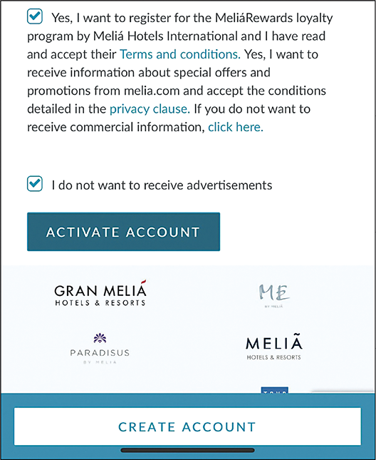 Рис. 1.2. Тактика, которую использует компания Melia для привлечения участников программы лояльности и подписчиков, — не самая полезная часть системы бронирования номеров