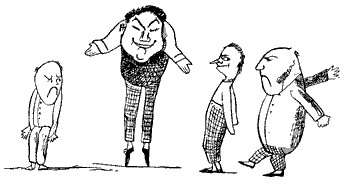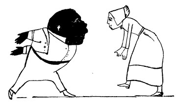 His nose is remarkably big; His visage is more or less hideous,