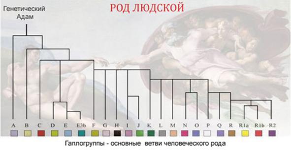 Учеными выделено несколько основных родов (гаплогрупп) исходящих от общего предка, их принято обозначать буквами латинского алфавита, данные рода так же разделяются на отдельные крупные ветви, некоторые из них более крупные иногда так же гаплогруппами, некоторые субкладами гаплогрупп.