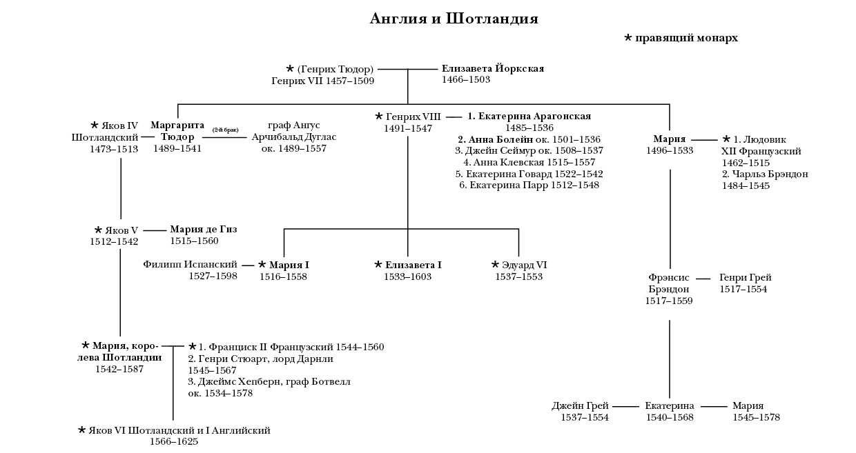 Наиболее известный тем, что имел шесть жен и порвал с Римом, потому что страстно желал получить наследника мужского пола, Генрих был монархом эпохи Возрождения. Соперник Франциска I и Карла V, он жаждал играть важную роль на более широкой европейской сцене. Когда Генрих взошел на трон в 1509 году, его старшая сестра Маргарита уже была замужем за королем Шотландии, но он организовал брак своей младшей сестры Марии (1496–1533) с французским королем Людовиком XII и допустил ее второе замужество с собственным фаворитом Чарльзом Брэндоном (лордом Лайлом, герцогом Саффолкским, 1484–1545).