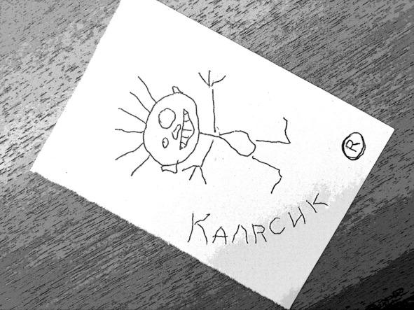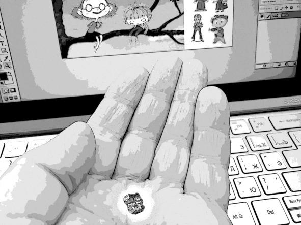 Малыш отверг всех «пупсиков», забраковал даже хулигана с рогаткой и синяком под глазом, взятом, на время, из мультяшек интернета. Минут через десять, пока взрослые беседовали на кухне о сложностях производства мультипликации, мальчуган принёс на бумажке свой вариант рисованного Калясика.