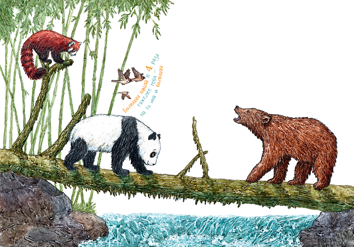 Ты сейчас, конечно, вытаращишь глаза, когда я признаюсь, что я ещё и китаец. «Э-э-э, – скажешь ты, – китайцами бывают только люди». Не спорю. Просто другие наши родственники обитают везде, во всём мире, а мы, панды, живём только в Китае, и значит, про меня можно сказать, что я – особенный китайский медведь.