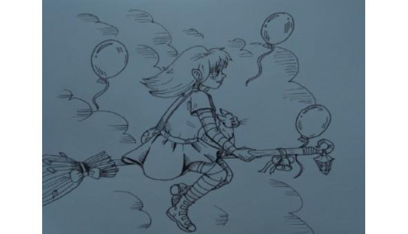 — Ну, что, милая, готова? — поглаживая метелку, спросила девочка. Уселась поудобнее и пустилась в путь.