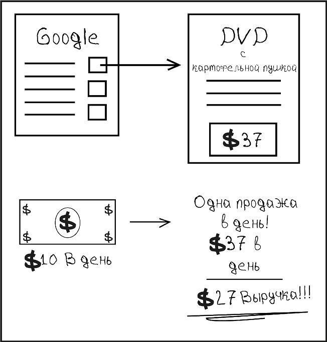 Рисунок 1.1: В среднем ежедневно я тратил по 10 долларов на рекламу, чтобы продать один диск за 37 долларов, так что я получал 27 долларов прибыли ежедневно.