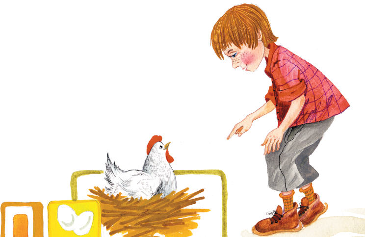 – Я знаю, – говорит Мишка. – Здесь про это написано. И потом, пока курица сидит на яйцах и воспитывает цыплят, она не несёт яиц, а если цыплят высиживает инкубатор, курица всё время несётся и яиц получается гораздо больше.