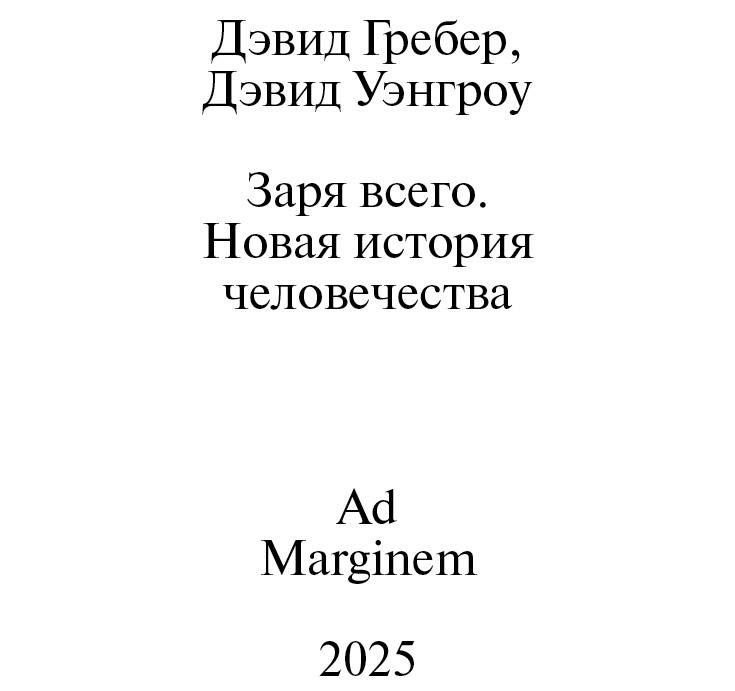 Дэвид Рольф Гребер скончался 2 сентября 2020 года в возрасте пятидесяти девяти лет спустя всего три недели после того, как мы закончили писать эту книгу, работа над которой заняла более десяти лет. Сначала это было просто ответвлением наших более «серьезных» академических проектов: эксперимент, своего рода игра, в ходе которой антрополог и археолог попытались с опорой на современные данные возобновить грандиозную дискуссию об истории человечества, которая раньше велась внутри наших дисциплин. У нас не было ни правил, ни дедлайнов. Мы писали когда хотели и как хотели, со временем всё глубже погружаясь в проект. На заключительном этапе работы над книгой мы с Дэвидом нередко разговаривали по два-три раза в день. Часто мы забывали, кому именно пришла в голову та или иная идея или пример, — всё шло в «архив», который быстро разросся настолько, что весь собранный материал стало невозможно уместить в одной книге. В итоге получилось не лоскутное одеяло из фактов и теорий, а самый настоящий синтез. Мы чувствовали, как наши стили письма и мышления постепенно сливались, образуя единый поток. Понимая, что мы не хотим заканчивать это интеллектуальное путешествие и что многие введенные нами понятия нуждаются в дальнейшем развитии и пояснении, мы планировали написать продолжение — не менее трех книг. Но первую книгу нужно было закончить, и 6 августа в 21:18 Дэвид с характерным твиттерским задором (и перефразируя Джима Моррисона) заявил: «Мой мозг оцепенел от неожиданности»1. Мы закончили книгу так же, как начали ее, в диалоге, пересылая друг другу черновики, читая и обсуждая одни и те же источники, часто засиживаясь до глубокой ночи. Дэвид был не просто антропологом. Он был активистом и публичным интеллектуалом с мировой репутацией, который стремился жить в соответствии со своими представлениями о социальной справедливости и свободе, давая надежду угнетенным и вдохновляя людей следовать его примеру. Эта книга посвящается светлой памяти Дэвида Гребера (1961–2020) и, как он и хотел, памяти его родителей Рут Рубинштейн Гребер (1917–2006) и Кеннета Гребера (1914–1996). Покойтесь с миром.