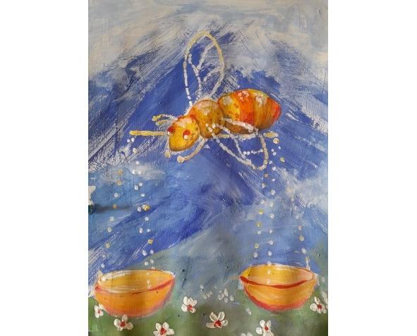 Луиза еще раз посмотрела на Весы Справедливости на своей ладони, тут вдруг прилетела пчелка и села на центральную ось весов, и все закружилось, заискрилось, Луиза зажмурилась, а когда открыла глаза, то увидела, что она находится у себя дома, а в руках у нее маленькие весы и серебряная брошка пчелка с янтарным брюшком и янтарными глазами.