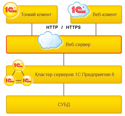 Они подключаются к специальным образом настроенному веб-серверу, который осуществляет их взаимодействие с кластером серверов «1С:Предприятия» (рис. 1.1).