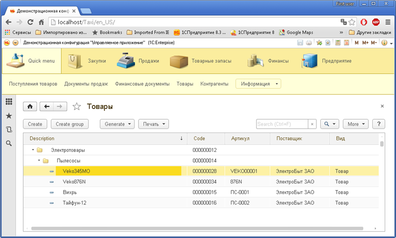 Рисунок 1.2. «1С:Предприятие», запущенное в режиме веб-клиента