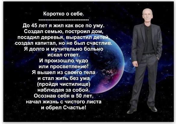символов, которые указывали на порочность действий или правильность различных поступков, места, дороги, помещения и дома. Всё пространство обретает собирательные черты. Были чувства, впечатления, отношения. Самое главное — я увидел себя, точнее, своё Я. Увидел и оценил свои поступки, своё поведение, чувства и настроение. Я и моё окружение, Я и пространство, Я и Мир. Человеку очень важно испытать такое чувство, понять сущность мироздания и во всём рационально разобраться. Я и пространство! Передо мной открылась новая картина, передо мной был, ранее неведомый мир.