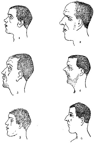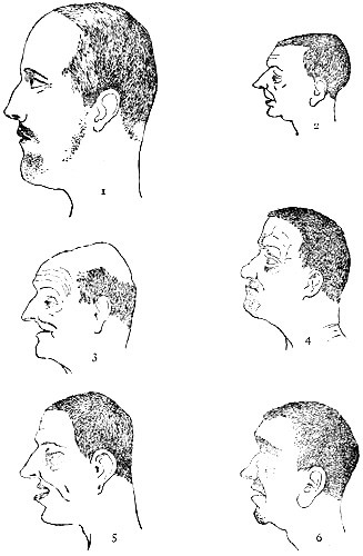 Ottolenghi has investigated the wrinkles on the faces of 200 criminals as compared with 200 normal persons. He finds that they are much more frequent and much more marked in the criminal than in the non-criminal person, and this must have struck many persons who have seen a large number of criminals or photographs of criminals. The relative frequency is especially marked in zygomatic and genio-mental wrinkles, while the foreheads, even of youthful criminals, and when the face is in a state of repose, sometimes present a curiously marked and scored appearance. The precocity of these wrinkles is worthy of note. “We found young criminals of fourteen,” Ottolenghi remarks, “with wrinkles more evident and marked than are met with in many normal men above thirty. It is these precocious wrinkles which give to young criminals that aspect of premature virility which Lombroso and Marro have already noticed.” “It is worthy of note,” he remarks also, “that the part of the face which, by the prevalence of wrinkles, shows more active expression in criminals as in other degenerated persons, is that corresponding to the region of the nose and mouth—that is to say, the less contemplative, more material, part of the face; and, in fact, we see that, with the exception of some murderers, who have a surly look and corrugated forehead, the typical delinquent presents habitually in the more rational and contemplative part of his face the least degree of active expression, this corresponding to his limited psychical sensibility.”