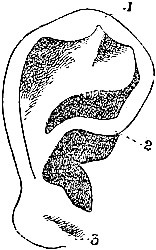 Tactile sensibility.—On the tongue the two points of the esthesiometer are perceived only at a distance of five mill. In general the sensibility is very feeble. Localisation very inaccurate; impressions on one side often referred to the other.