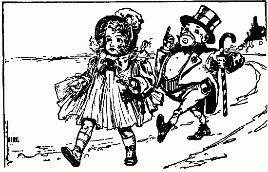"Dear me!" cried Dorothy; "I shall have to show you the way; you're so stupid. Wait a minute till I run in the house and get my sunbonnet."