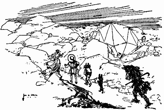After a while they came to the place where five roads branched in different directions; Dorothy pointed to one, and said:
