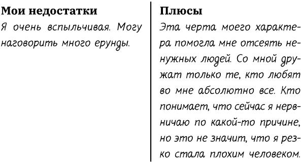 А справа – запиши ситуации и моменты, когда эти самые недостатки тебе пригодились.