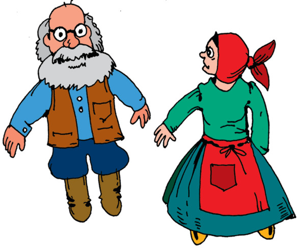 Но недалеко от выхода из деревни друзья наткнулись на странную парочку — маленького взлохмаченного старичка и старуху с клюкой. Старичок, повесив на нос очки-линзы и низко-низко склонившись, что-то изучал на дороге в пыли.