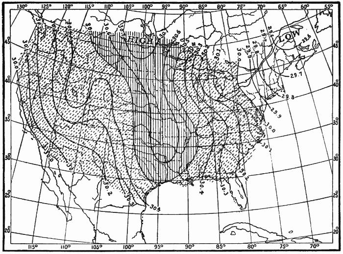 So important is a knowledge of the conditions of the winds and the weather, that scientific expeditions into unexplored or little-known regions give much of their time to meteorological observations. On the famous Lady Franklin Bay Expedition (1881-1884) of Lieutenant (now General) A. W. Greely, of the United States Army, meteorological observations were kept up by the few feeble survivors, after death by disease and starvation had almost wiped out the party altogether, and when those who were left had but a few hours to live unless rescue came at once. On Nansen’s expedition to the “Farthest North,” on Peary’s trips to Greenland, and on every recent voyage to the Arctic or the Antarctic, meteorological instruments have formed an important part of the equipment.