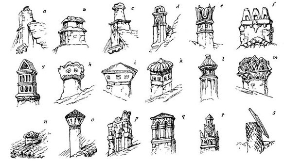 7.Chimneys. (Eighteen sketches redrawn from the Architectural Magazine)
