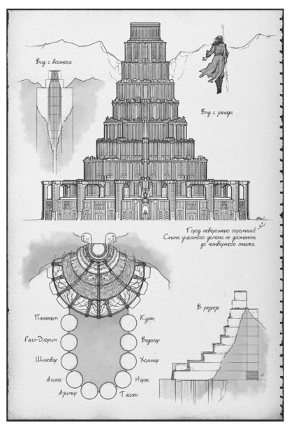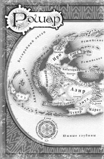 В этом году Бен Максуини полностью присоединился к команде «Dragonsteel», и в книге представлены некоторые из его лучших работ. Страницы со спренами Шаллан особенно удачно дополняют визуальную эстетику Рошара. Мне нравится, как рисунок Бена, в подробностях изображающий атриум Уритиру, помогает передать необъятность города; в этом смысле особо благодарю Алекса Шнайдера за консультации по некоторым архитектурным вопросам.