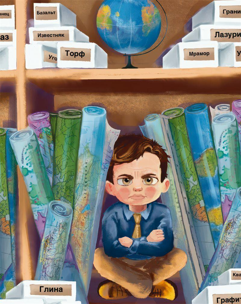 Ванька был очень зол. Мало того, что конфет не получил, так ещё и его отсутствия в классе никто не заметил. Он сидел в душном тесном шкафу в кабинете географии. Здесь хранились огромные плакаты, карты полушарий, а в коробках – горные породы. Вот-вот, и какой-нибудь минерал из такой коробки готов был свалиться Ваньке точно в лоб. Какой? Ванька не знал. Запомнить их названия он даже не пытался – слишком уж сложными они ему казались. Все эти базальты, граниты, известняки.