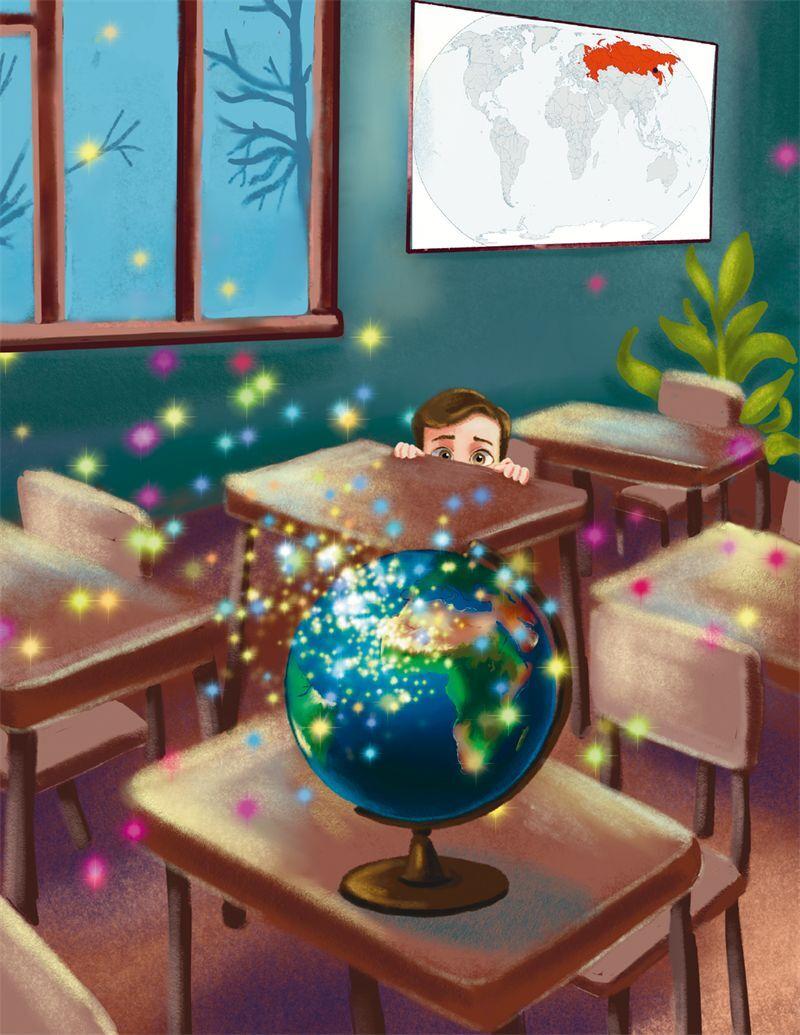 Наконец Иван собрал всю свою волю в кулак и подкрался к светящемуся и грохочущему глобусу. Раскрутил его в противоположную сторону и снова спрятался под парту.