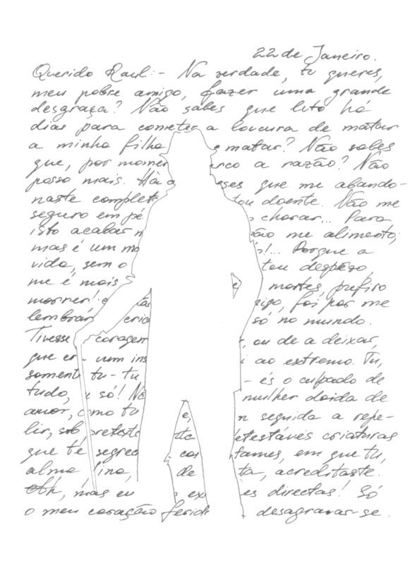 Дорогой Рауль: действительно ли ты хочешь, мой бедный друг, сделать меня несчастной? Неужели ты не знаешь, что все эти дни я борюсь с собой, чтобы не сойти с ума и не убить сперва мою дочь, а потом и себя? Не знаешь, что иногда я теряю рассудок? Я не могу больше. Вот уже два месяца, как ты мне не написал ни слова; два месяца, как ты покинул меня. Я больна. Не держусь на ногах. Не могу даже плакать… Чтобы все это закончилось быстрее я перестала есть; но это смерть на медленном огне!.. Так как жизнь без твоей любви и с твоим презрением для меня более невыносима, чем тысячи смертей, предпочитаю умереть! если я до сих пор не покончила с собой, то лишь потому, что я помню о дочери, которая останется одна в этом мире. Если бы мне хватило смелости её убить или оставить, я бы это сделала немедленно!.. Я достигла предела. Ты, только ты, отвергнувший меня — ты виною всему, ты один! Ни одна женщина не будет сходить с ума от любви, чтобы потом, как это сделал ты, отречься под предлогом, изобретенным отвратительными созданиями, сообщающими тебе по секрету низкие вещи, в которые ты, душа чистая и артистическая, поверил. О, я хочу прямых объяснений! Моё израненное сердце умеет мстить… Когда произносят такую ужасную клевету, её говорят перед обвиняемыми, чтобы они могли оправдаться. Ты не поступаешь так, и посылаешь третьих лиц оскорблять меня и говорить мне, что «меня всю мою жизнь будут мучить угрызения совести»! Если бы они у меня были, верь, не испытывала бы я их долго!.. и не только я бы их испытывала. Ты, да, ты должен их иметь, потому что ты меня убиваешь, крадешь меня у моего ребенка, который завтра останется без матери и практически без отца, так как Руи всегда или на корабле, или в заморских странах, и никогда не сможет он брать её с собой. Моя бедная девочка! О, у тебя нет сердца!