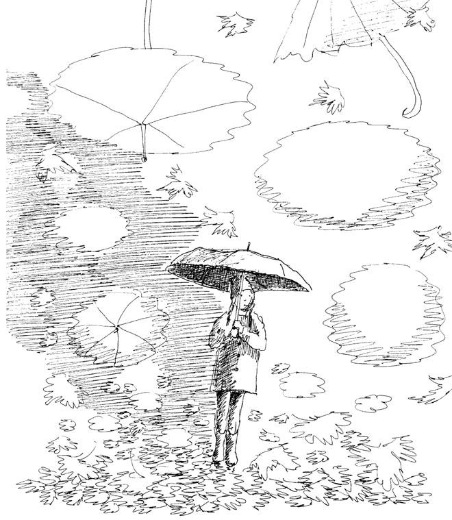 Первого сентября с утра зарядил дождь. Он лил и лил, прибивая к асфальту осенние листья, заставляя птиц прятаться в укрытия, а первых прохожих быстро раскрывать свои зонтики.