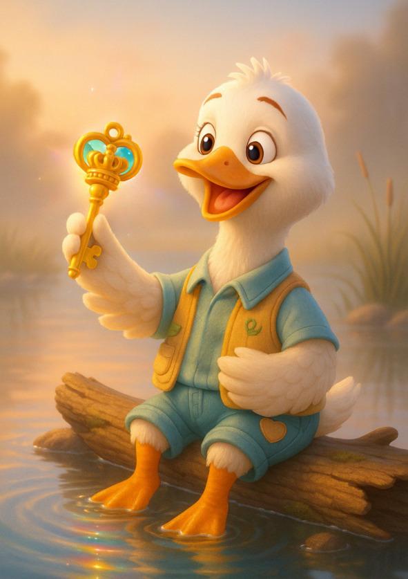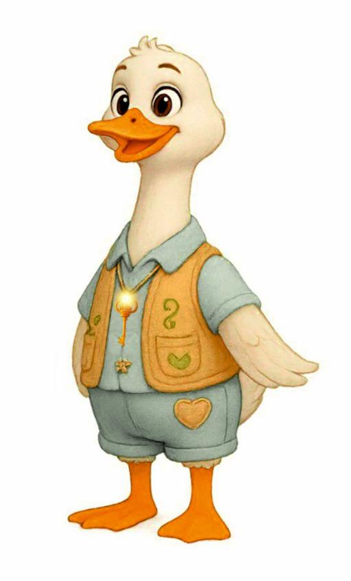 В самой обычной деревне, на берегу тихой речки, жил самый обычный гусак по имени Гриша. С виду он был таким же, как все: крепкий, белый, с добрыми глазами-бусинками и большими оранжевыми лапами. Но если приглядеться, можно было заметить, что в его взгляде таилась не гусиная важность, а какая-то особая, задумчивая глубина, излучающая доброту и лукавство. Он все время ходил в своем любимом коротеньком бархатистом жилете песочного цвета с зелёными вставками, украшенном вышивкой вихря ветра и нот, большой пуговицей-кристаллом и карманами. На его шортах красовалась заплатка в форме сердечка.