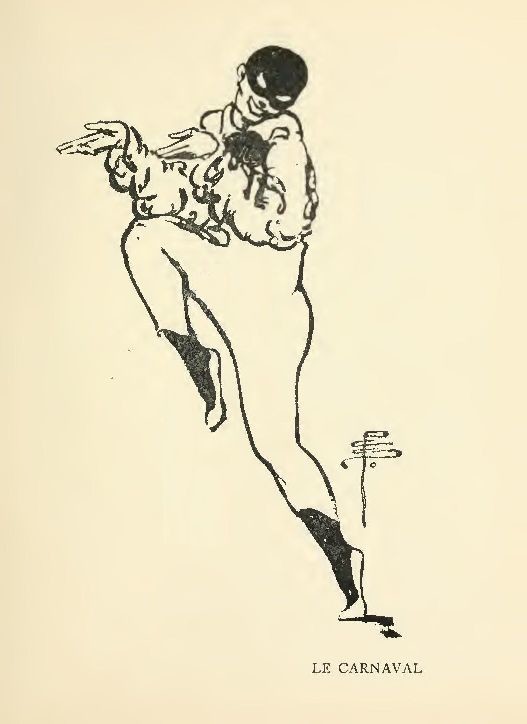 For the first time I will use the word "acting" in connection with the Russian ballet. The comedy in "Le Carnaval" is of a very high order. The story is interpreted more through genuine pantomime than through dancing, which perhaps accounts for the popularity of this particular ballet with us English, who still understand the nature of good acting better than the nature of good dancing, although we are at the present time much attracted by dancing. A real note of freakish farce is in this "Carnaval." The dancing itself is freakish. It is the simplest, silliest thing! A bit of fun—yet to give us this bit of fun what serious work was needed! The grave young Nijinsky is transformed into a mischievous child!