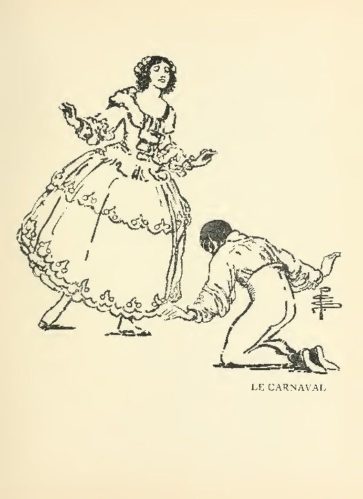 LE CARNAVAL," the second of the dance poems which have inspired Miss Pamela Colman Smith, is equally romantic, but not in the pensive, twilight manner of "Les Sylphides," with its vague suggestion of mysterious grief. Everything in "Carnaval" is joyous and insouciant—except perhaps poor Bolm as Pierrot, the unhappy dupe of Nijinsky-Arlecchino's teasing pranks. Bakst's scene, with its plain blue curtains and two absurd uncomfortable Victorian sofas, prepares us for the Russian interpretation of Schumann's music, before the peg-top trousered and crinolined corps de ballet have made their appearance.