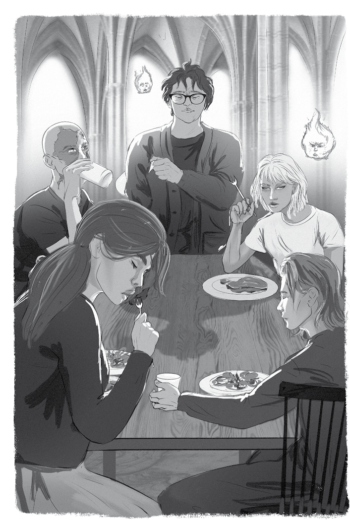 — Как вы думаете, на экзаменах будут практические задачи? — небрежно перебивает ее Колен, раскапывая ложкой вязкую овсянку так, словно рассчитывает найти там клад. — Видите ли… Я пропал и меня искали несколько недель, поэтому я немного отстал по программе, если вы понимаете, что я имею в виду…