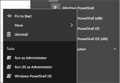Вы можете запустить PowerShell от имени администратора, щелкнув правой кнопкой мыши в Windows PowerShell и выбрав пункт «Запуск от имени администратора», как показано на рис. 1.2.