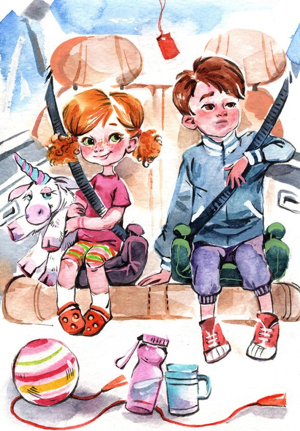Маша тоже хотела последовать за всеми, но отстегнуть ремень безопасности у неё не получалось.