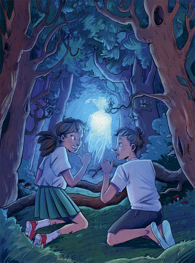 Ломик шёл за сестрой и смотрел ей в затылок, на взлохмаченные вихры. Куда они идут? Зачем преследуют загадочный огонёк? Может, лучше повернуть обратно, пока не поздно? Эти вопросы крутились у Ломика на языке, но он не успел их задать. Неожиданно Малинка остановилась — огонёк замер на месте.