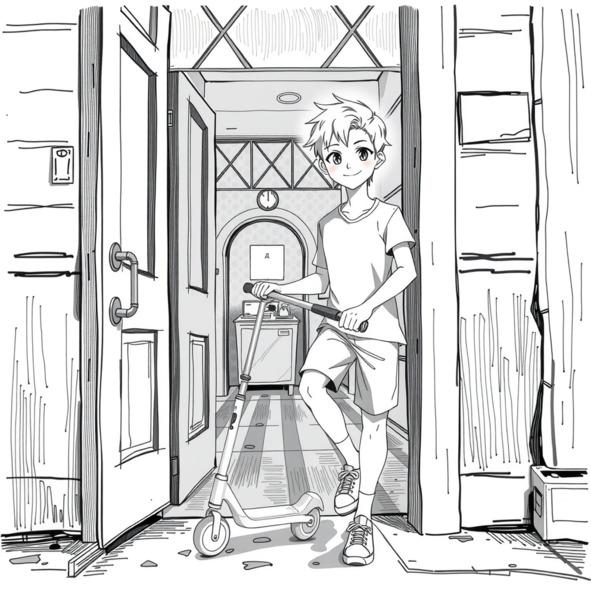 Худенький мальчуган был одет в новую белую футболку, заправленную в серые трикотажные шортики, по современной моде несколько длинноватые, белые носочки и такие же кроссовки. На левой коленке темнела недавно полученная болячка. Честно говоря, я в своей жизни очень редко встречал мальчишек, у которых не были бы ободраны коленки. Этот человечек не был исключением. Наиболее вероятная причина болячки была в руках мальчика — он вышел с самокатом.
