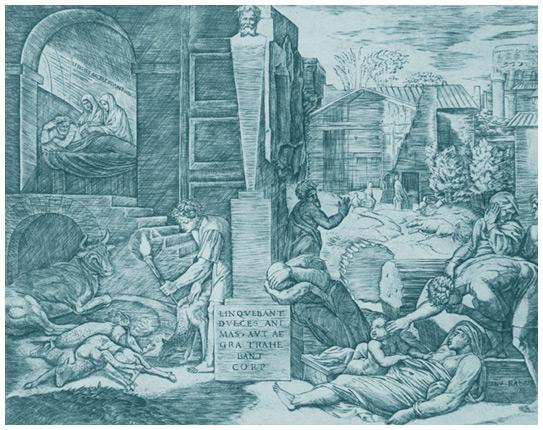 Чума во Фригии. Гравюра Маркантонио Раймонди (ок. 1480–1534), Италия.