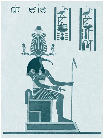Изображение древнеегипетского бога Тота с короной Хемхемет. Иллюстратор: Леон Жан Джозеф Дюбуа. 1823–1825.