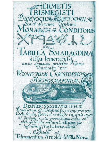 Титульный лист латинского перевода «Изумрудной скрижали» Гермеса Трисмегиста.