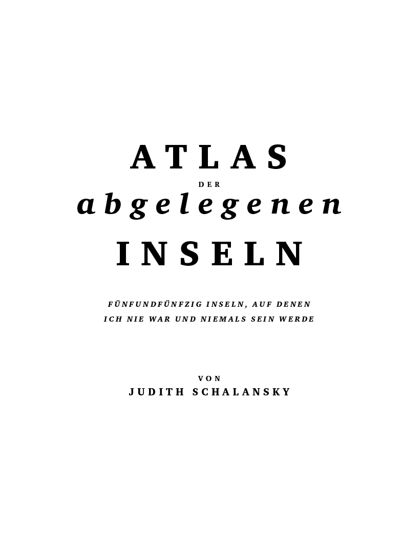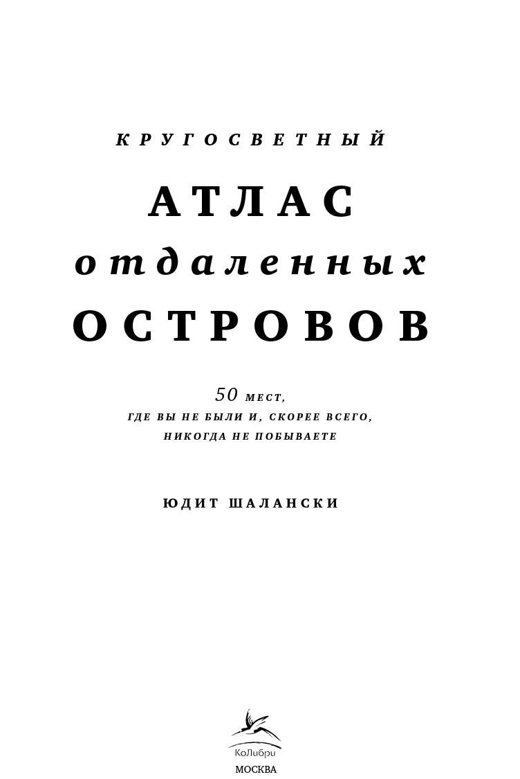 Кругосветный атлас отдаленных островов : 50 мест, где вы не были и, скорее всего, никогда не побываете / Юдит Шалански ; [пер. с нем. М.В. Кедровой]. — М. : КоЛибри, Азбука-Аттикус, 2024.