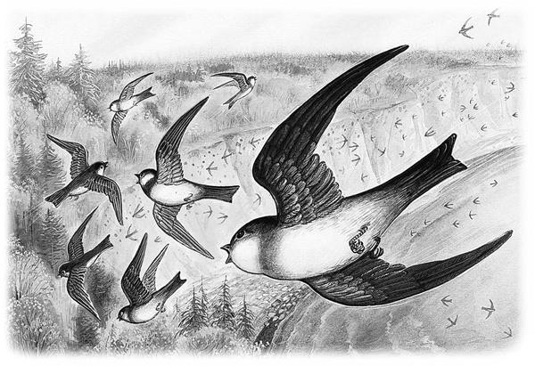 Ласточки переполошились: все – врассыпную, кто куда, – мигом разлетелась вся стая. А проворная Береговушка от него без оглядки за реку, да над лесом, да через озеро! Очень уж страшная пятнашка Чеглок-Сокол.