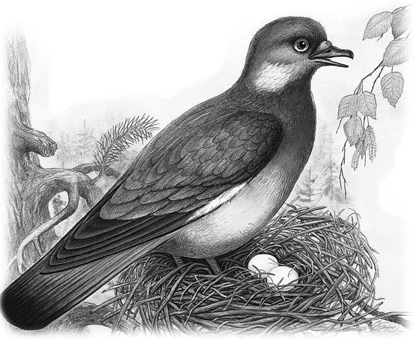 Прогнала Чомга Береговушку, та и полетела. Летит и плачет без слёз: слезами птицы не умеют плакать. А уж ночь наступает: солнце зашло, темнеет. Залетела Береговушка в густой лес, смотрит: на высокой ели, на толстом суку выстроен дом. Весь из сучьев, из палок, круглый, а изнутри мох торчит мягкий.